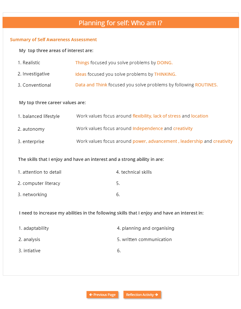 Summary of my skills audit